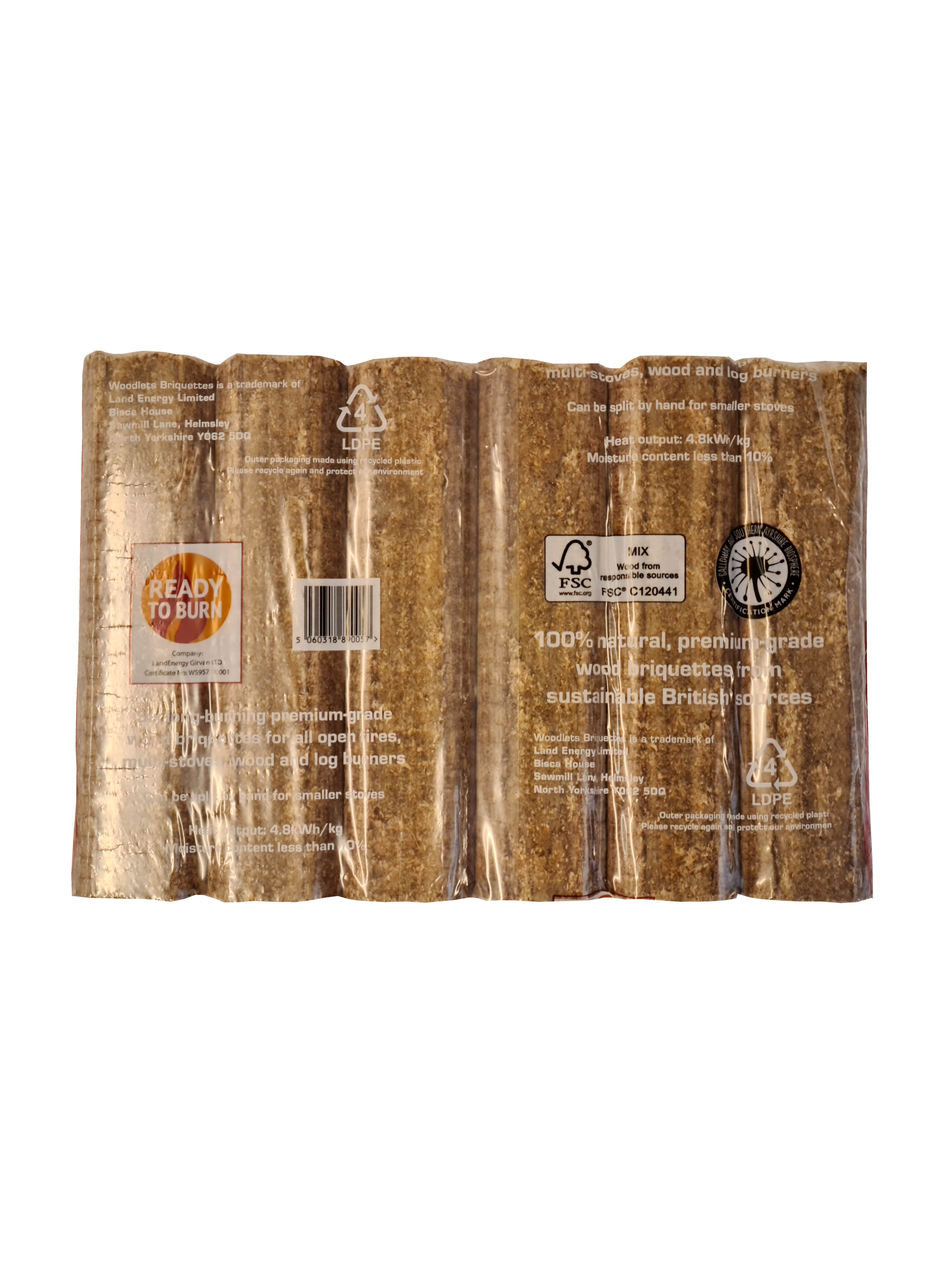 The Woodlets Briquettes give out a good heat output at 4.8kWh per kg, have a very low moisture content of 10% or less and exceeds the new Clean Air Quality standards. The briquettes are also certified Ready to Burn.