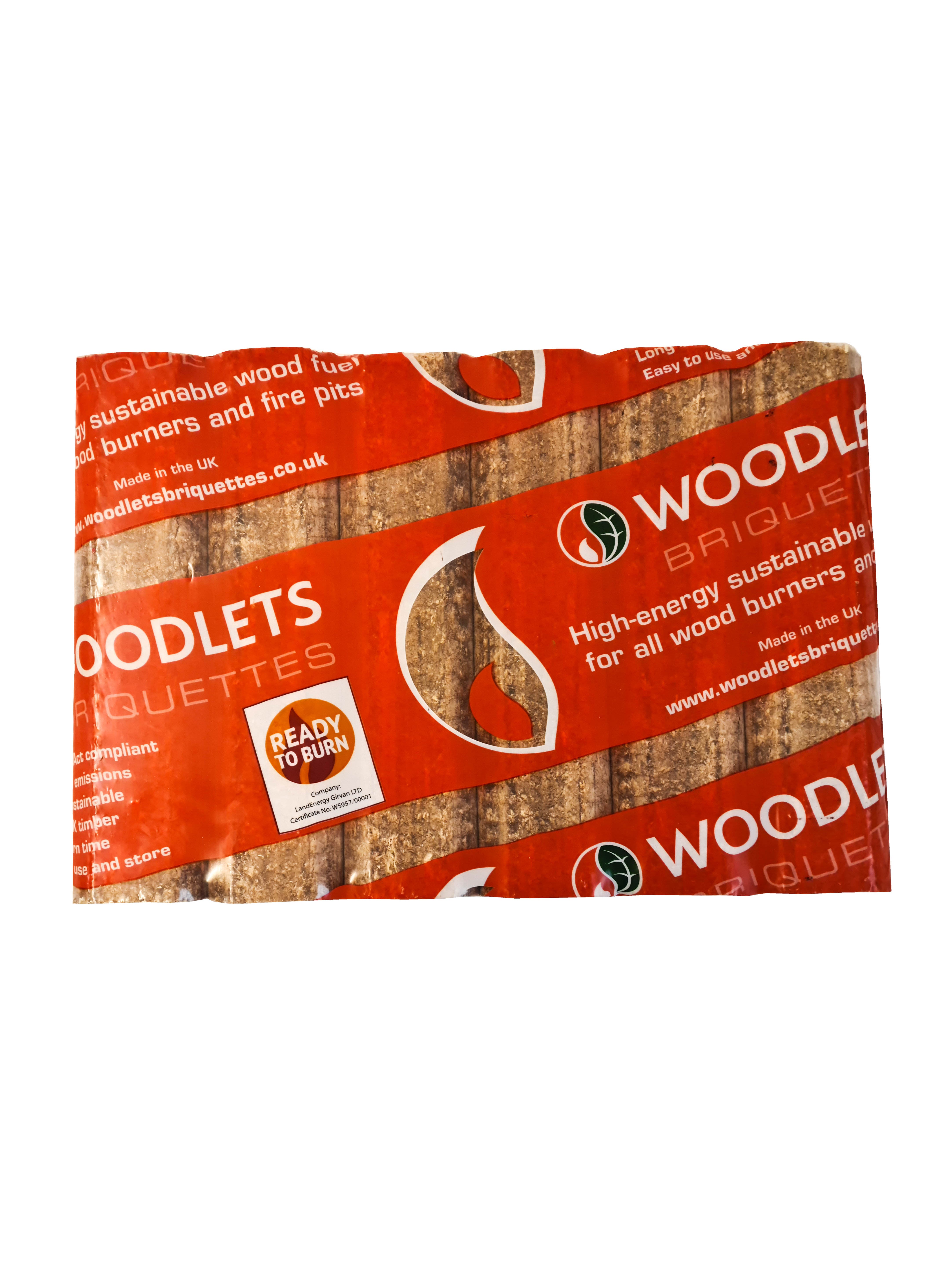 Woodlets Briquettes heat logs are a 100% natural, premium grade wood briquette made from sustainable British sources. Each pack contains 6 individual briquettes. They are clean and easy to handle.