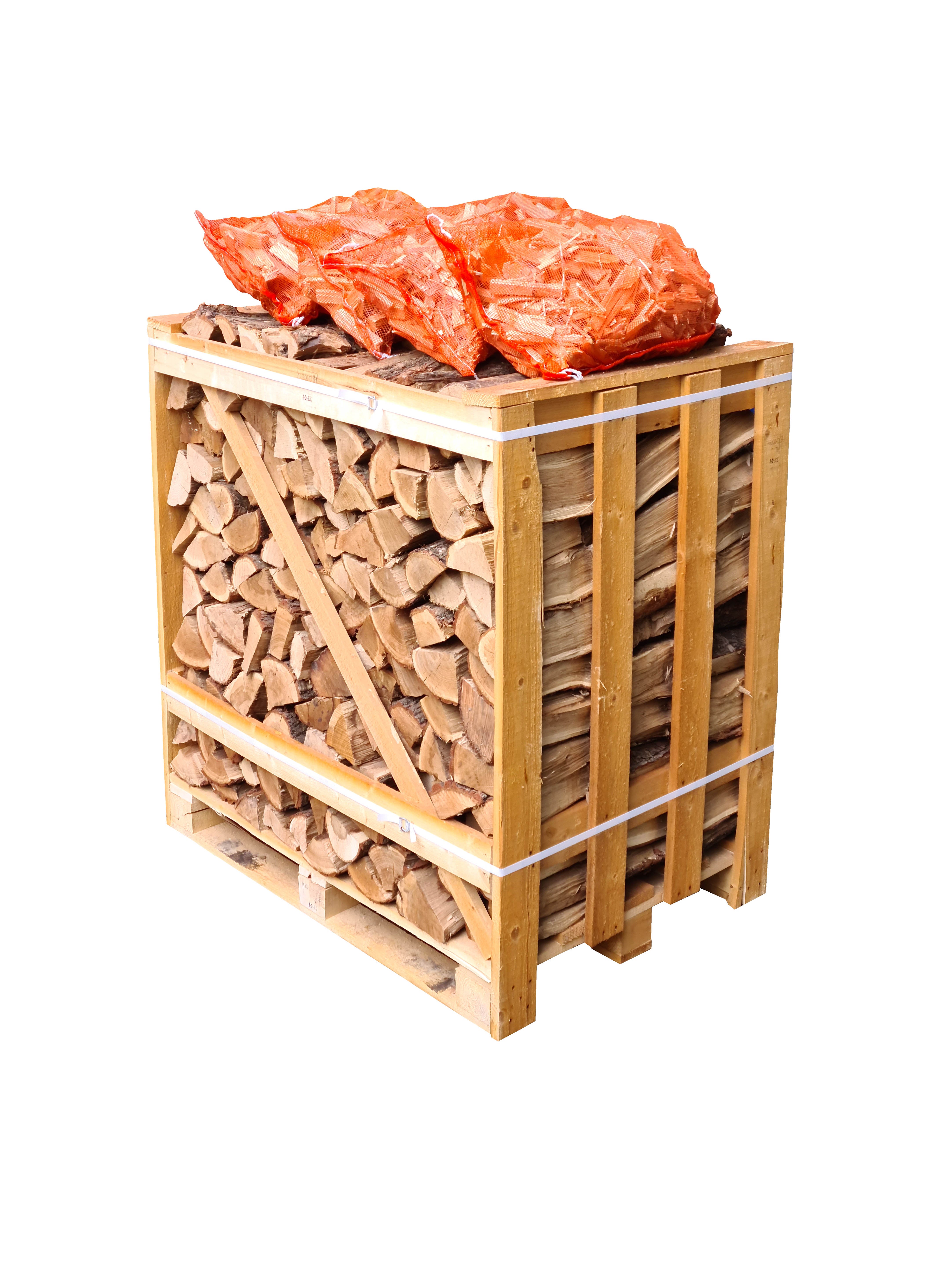Crate of Kiln Dried Hornbeam Logs & 4 Nets of Kindling - Medium Crate
